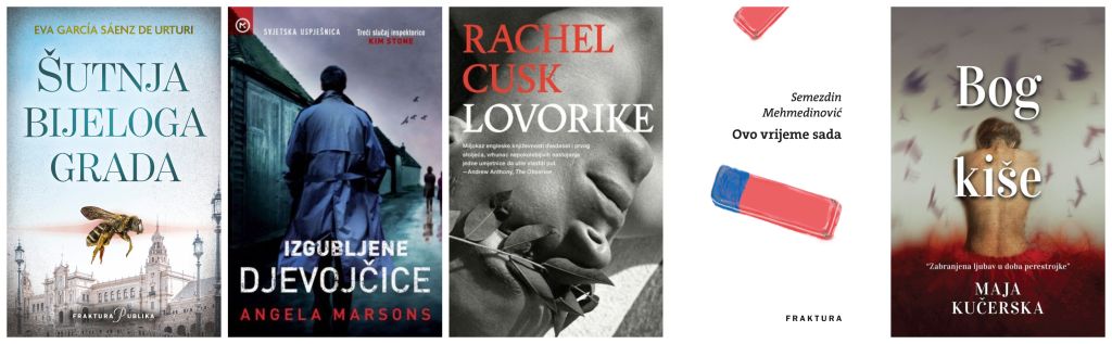 Počet ćemo s trilerom “Šutnja bijeloga grada” kojeg nam donosi Eva García Sáenz de Urturi. U prvom romanu senzacionalne u mističnoj atmosferi Baskije, slijedeći trag krvi, koji od drevnih dolmena i keltskih nalazišta vodi do Stare katedrale i velebnih palača Vitorije – ovaj triler furiozna tempa hvata nas u svoju mrežu i ne dopušta nam da predahnemo. Jednako je zanimljiv i kriminalistički roman “Izgubljene djevojčice” Angele Marsons, svjetska je to uspješnica i treći slučaj inspektorice Kim Stone. Dvije su djevojčice otete. Samo će jedna biti vraćena. Slijede tri suvremena roman. Prvi, “Lovorike” autorice Rachel Cusk, govori o poslu, obitelji, o umjetnosti, politici, ljubavi, patnji i radosti, zaslugama, pravdi i nepravdi. Nadalje, “Ovo vrijeme sada” Semezdina Mehmedinovića je vrijeme koje izabiremo da bismo doživjeli sebe same, da bismo osjetili vlastitu intimu, da bismo otkrili duboko skrivene iskrice koje nas čine čovjekom. Ovo vrijeme sada knjiga je potrage, sjećanja i osjećaja. Treći suvremeni roman naziva je “Bog kiše” Maje Kučerske. Čita se kao akcija, u jednom dahu, autorica do kraja drži čitatelja u neizvjesnosti o tome što će se dogoditi. To je snažan, iskreno napisan roman kojim je Kučerska velikom dijelu svoje generacije pokazala istinski duhovni put i opasnosti koje ih na tom putu čekaju.