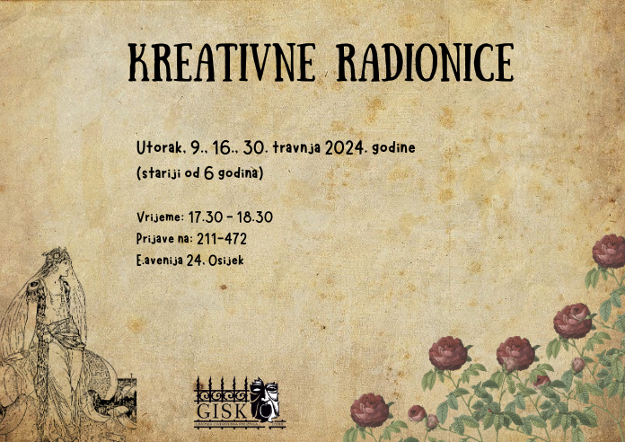 Tijekom travnja, Odjel za rad s djecom i mladima Gradske i sveučilišne knjižnice Osijek organizira kreativne radionice za djecu stariju od 6 godina prema sljedećem rasporedu: