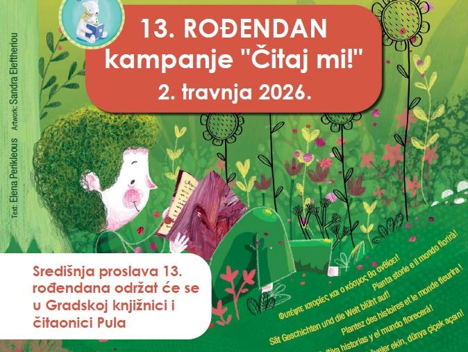 Gradska i sveučilišna knjižnica Osijek i Fakultet za odgojne i obrazovne znanosti Osijek obilježavaju rođendan Ivane Brlić Mažuranić uz 13. rođendan nacionalne kampanje za poticanje čitanja naglas djeci “Čitaj mi!”. Tim povodom organiziraju pričaonicu pod nazivom “Ljekovite priče za najmlađe“, koja će se održati u srijedu, 15. travnja 2026. s početkom u 10.00 sati u prostoru Fakulteta za odgojne i obrazovne znanosti Osijek, Ul. cara Hadrijana 10, Osijek.